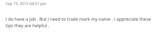 In one of our emails, he replied: “I do have a job. But I need to trademark my name. I appreciate these tips, they’re helpful.”. I gave him some personal advice in his email and wanted to share some advice that I feel may be helpful.